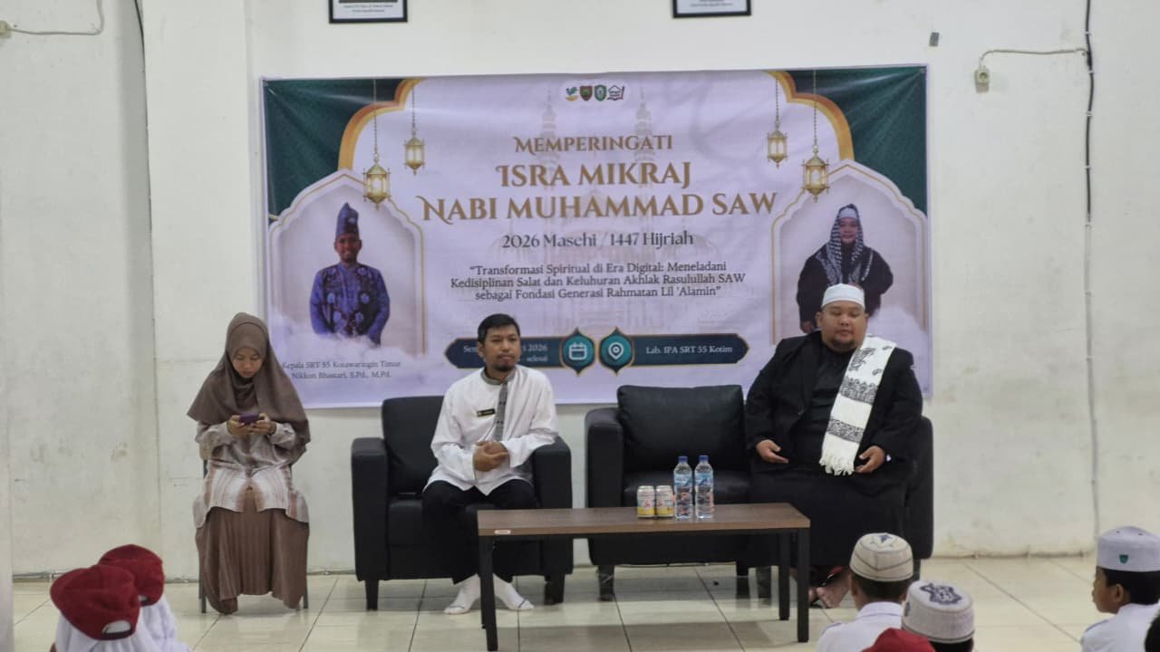 Sampit, 21 Januari 2026- Suasana khidmat menyelimuti SRT 55 Kotawaringin Timur saat seluruh civitas akademika berkumpul untuk memperingati Isra Mi’raj Nabi Muhammad SAW 1447 H. Bertempat di Laboratorium IPA, kegiatan ini dimulai tepat pukul 07.30 WIB.Rangkaian acara diawali dengan pembukaan dan pembacaan ayat suci Al-Qur'an oleh salah seorang siswa SRMA. Acara kemudian dilanjutkan dengan sambutan hangat dari Kepala Sekolah SRT 55 Kotawaringin Timur, Bapak Nikkon Bhastari, S.Pd., M.Pd.